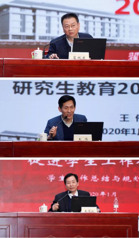下午的專題報告環(huán)節(jié)由校黨委副書記靳琦主持。校黨委副書記、副校長翟雙慶以《本科教育2020行動計劃》為題作專題報告,提出學(xué)校進一步提升本科教育質(zhì)量,加快建設(shè)一流本科的指導(dǎo)思想、基本原則和建設(shè)思路,并細化了具體行動方案。副校長王偉以《研究生教育2020行動計劃》為題作專題報告,分析了我校研究生教育現(xiàn)狀,提出了推進研究生培養(yǎng)質(zhì)量整體提升的指導(dǎo)思想、基本原則行動思路,明確了各項重點任務(wù)。副校長王耀獻以《貫徹三全育人理念,促進學(xué)生工作創(chuàng)新》為題,總結(jié)了2019年學(xué)校三全育人成效亮點和特色經(jīng)驗,分析研判了現(xiàn)存不足,提出了如何進一步完善三全育人各項工作機制和育人體系。
