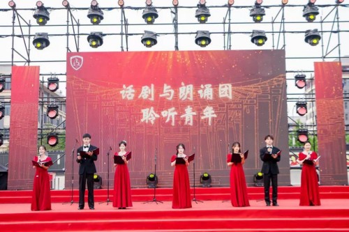 校大學(xué)生藝術(shù)團(tuán)話劇與朗誦團(tuán)深情演繹詩(shī)朗誦《聆聽(tīng)青年》,以激昂的話語(yǔ)拉開(kāi)了五四歌會(huì)的序幕。