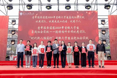 在頒獎(jiǎng)儀式環(huán)節(jié),領(lǐng)導(dǎo)嘉賓為近一年在創(chuàng)新創(chuàng)業(yè)、社會(huì)實(shí)踐、藝術(shù)美育、社團(tuán)活動(dòng)、志愿服務(wù)、學(xué)生工作等領(lǐng)域取得優(yōu)異成績(jī)的同學(xué)頒獎(jiǎng)。