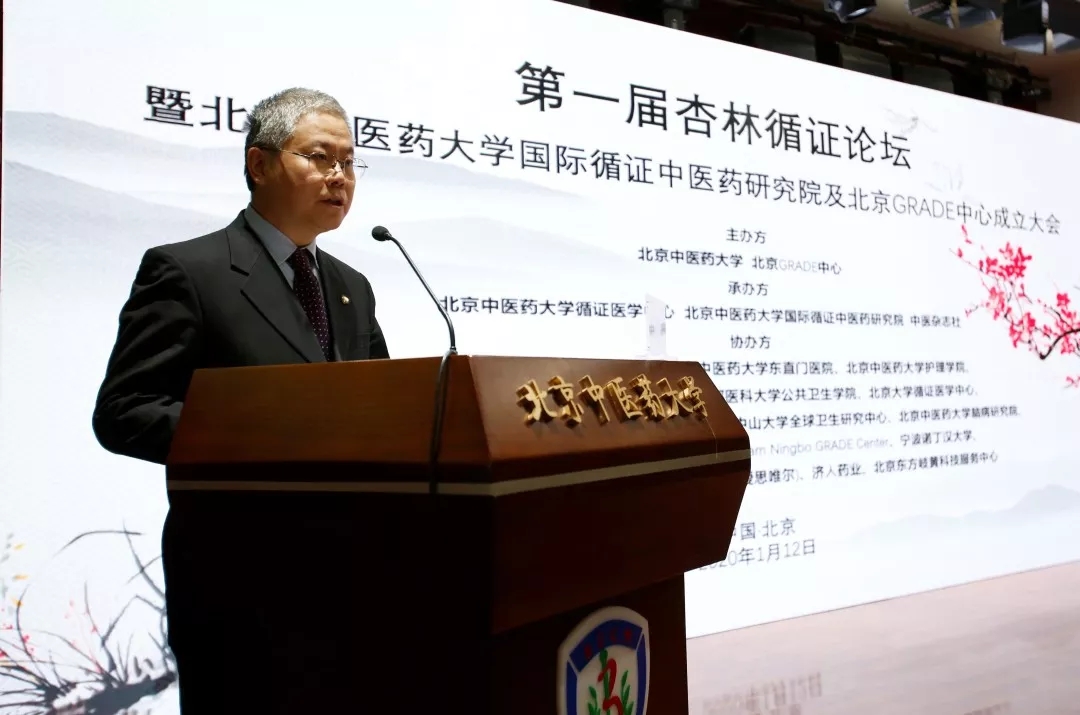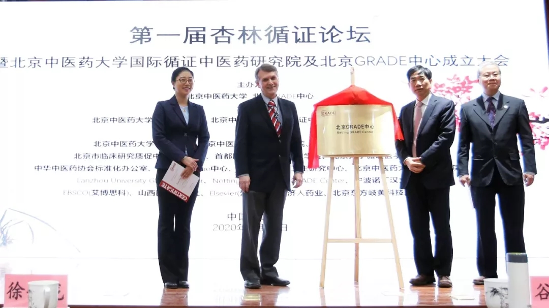 1月12日,北京中醫(yī)藥大學(xué)國際循證中醫(yī)藥研究院、北京GRADE中心成立暨揭牌儀式在我校舉行。循證醫(yī)學(xué)創(chuàng)始人、GRADE創(chuàng)始人、GRADE指導(dǎo)委員會(huì)主席、加拿大麥克馬斯特大學(xué)Gordon Guyatt院士,北京中醫(yī)藥大學(xué)黨委書記谷曉紅,校長徐安龍為研究院和中心揭牌。眾多國內(nèi)循證醫(yī)學(xué)領(lǐng)域知名專家,以及我校相關(guān)部門和學(xué)院負(fù)責(zé)人等出席了開幕式。開幕式由我校副校長陶曉華主持。