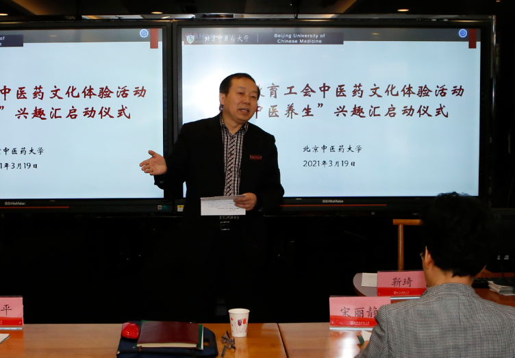 啟動儀式上,北京市教育工會主席宋麗靜表示,2019年以來,市教育工會陸續(xù)創(chuàng)辦了乒乓球、羽毛球、汽車、冰雪運(yùn)動、美好生活、傳統(tǒng)文化、青年教師等七個(gè)“興趣匯”組織,受到廣大教職工的熱烈歡迎,今天在北京中醫(yī)藥大學(xué)進(jìn)行“中醫(yī)養(yǎng)生”興趣匯啟動儀式,成立市教育工會的第八個(gè)“興趣匯”組織。選擇北京中醫(yī)藥大學(xué)工會承辦此項(xiàng)活動是因?yàn)楸本┲嗅t(yī)藥大學(xué)是我國培養(yǎng)高層次創(chuàng)新型中醫(yī)藥人才的教育基地、高等中醫(yī)藥教育改革的示范基地、中醫(yī)藥知識創(chuàng)新和技術(shù)創(chuàng)新的研究基地、防治重大疾病和疑難疾患的醫(yī)療基地、弘揚(yáng)優(yōu)秀傳統(tǒng)文化的人文基地、推進(jìn)中醫(yī)藥走向世界的國際交流基地,具備雄厚的師資力量和強(qiáng)大的專業(yè)能力。希望“中醫(yī)養(yǎng)生”興趣匯可以成為市教育工會的又一項(xiàng)亮點(diǎn)品牌工作,向全市教職工和全社會弘揚(yáng)中醫(yī)藥文化。