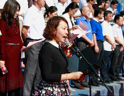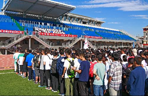 我校國(guó)旗班邁著鏗鏘有力的步伐護(hù)衛(wèi)國(guó)旗入場(chǎng),鮮艷的五星紅旗在國(guó)歌聲中揚(yáng)起,在全體師生的注目下冉冉上升,開(kāi)學(xué)典禮由此拉開(kāi)序幕。