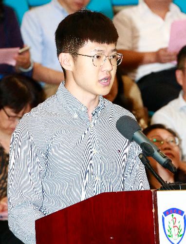 在校生代表、第一臨床醫(yī)學(xué)院2016級(jí)博士研究生張斌龍同學(xué)用自己的切身經(jīng)歷,向新生描述了豐富的研究生生活和學(xué)習(xí)經(jīng)驗(yàn),他認(rèn)為研究生的學(xué)習(xí)生活可以用“立明志”、“求于實(shí)”、“勇創(chuàng)新”三個(gè)關(guān)鍵詞來(lái)概括,并鼓勵(lì)新生惜韶華,“博極醫(yī)源,精勤不倦”, 實(shí)現(xiàn)絢爛的青春夢(mèng)想。