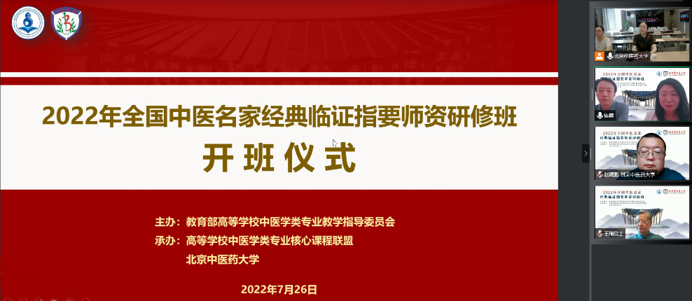 學經(jīng)典、懂經(jīng)典、用經(jīng)典!2022年全國中醫(yī)名家經(jīng)典臨證指要師資研修班隆重開班為持續(xù)促進中醫(yī)藥傳承創(chuàng)新發(fā)展,進一步落實全國中醫(yī)藥大會及《關于加強新時代中醫(yī)藥人才工作的意見》文件精神,以中醫(yī)藥經(jīng)典理論教師、臨床帶教教師為重點,培養(yǎng)造就一批教學名師和優(yōu)秀教學團隊,提高全國中醫(yī)學專業(yè)教師與臨床醫(yī)師的中醫(yī)經(jīng)典臨床運用能力及教學能力,7月26日下午,由教育部高等學校中醫(yī)學類專業(yè)教學指導委員會(以下簡稱中醫(yī)教指委)主辦、高等學校中醫(yī)學類專業(yè)四大經(jīng)典課程聯(lián)盟與北京中醫(yī)藥大學共同承辦的“2022年全國中醫(yī)名家經(jīng)典臨證指要師資研修班”隆重開班。282022-07
