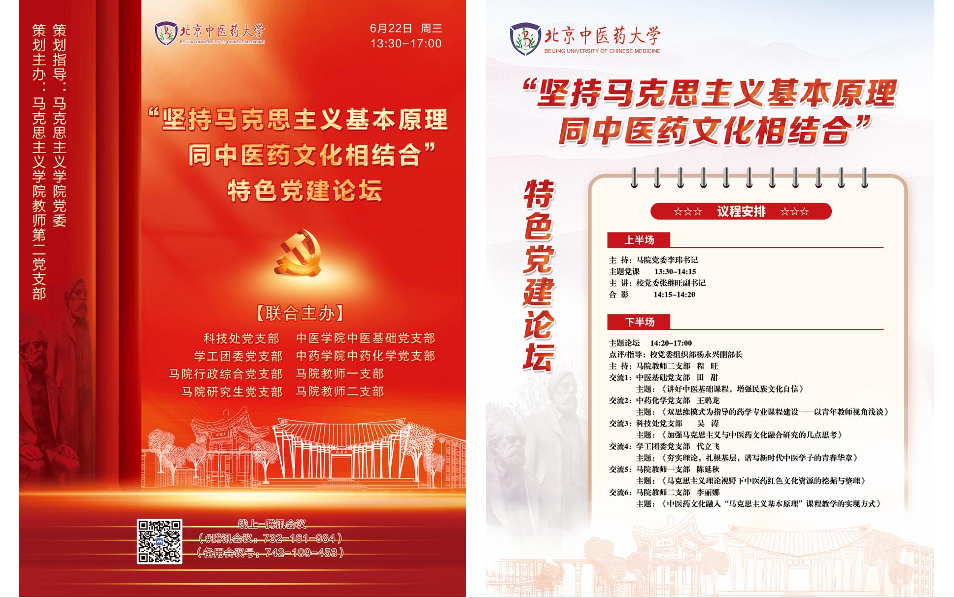 我校舉行“堅持馬克思主義基本原理同中醫(yī)藥文化相結(jié)合”特色黨建論壇6月22日,在我校馬克思主義學院黨委指導下,馬克思主義學院教師第二黨支部策劃并聯(lián)合中醫(yī)學院中醫(yī)基礎黨支部、中藥學院中藥化學黨支部、科技處黨支部等八個支部共同舉辦了“堅持馬克思主義基本原理同中醫(yī)藥文化相結(jié)合”特色黨建論壇。校黨委書記谷曉紅、校黨委副書記張繼旺、副校長王耀獻、黨委組織部副部長楊永興出席論壇,馬克思主義學院領導班子成員、主辦支部全體黨員同志等近百人參加特色黨建論壇。