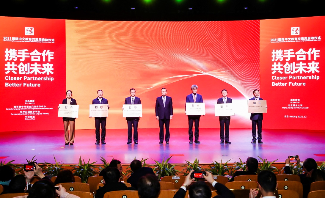 我校獲批國際中文教育(中醫藥文化)實踐與研究基地12月13日上午,由教育部中外語言交流合作中心、世界漢語教學學會、中文聯盟聯合主辦的“攜手合作、共創未來——2021國際中文教育交流周”活動正式啟動。教育部副部長田學軍、我校黨委書記谷曉紅、校長助理張立平、國家中醫國際傳播中心主任張丹英出席了啟動儀式。谷曉紅書記代表學校接受了教育部為我校頒發的國際中文教育(中醫藥文化)實踐與研究基地銘牌。142021-12