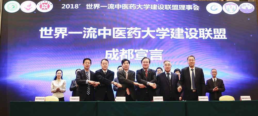 世界一流中醫藥大學建設聯盟理事會會議召開2018年12月30日上午,“世界一流中醫藥大學建設聯盟”理事會會議在成都召開。參加會議的有北京中醫藥大學、上海中醫藥大學、廣州中醫藥大學、成都中醫藥大學、南京中醫藥大學和天津中醫藥大學的校領導及相關部門負責人。會議由成都中醫藥大學校長余曙光主持。032019-01