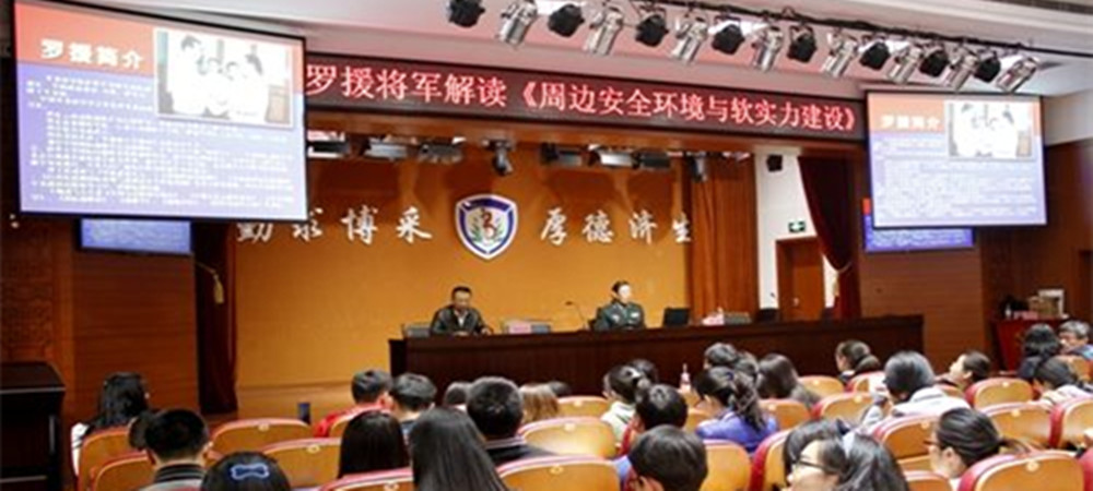 我校名師大講堂邀請羅援少將為研究生作專題講座4月19日下午,我校邀請著名的國際戰(zhàn)略學和國家安全學專家羅援少將,以《周邊安全環(huán)境和軟實力建設(shè)》為題,為我校研究生做專題輔導(dǎo)報告,此次名師大講堂活動同時也是我校第四期研究生黨員骨干培訓班專題培訓之一。我校黨委副書記、副校長翟雙慶,校長助理、研究生院常務(wù)副院長劉銅華,研究生院副院長潘彥舒,研究生院副院長、研工部副部長韓振蘊,馬克思主義學院黨委書記王良濱,我校思政課教師,研究生黨骨班全體學員、研究生代表、研究生輔導(dǎo)員等共350余人聽取了報告。報告會由翟雙慶副校長主持。222016-04